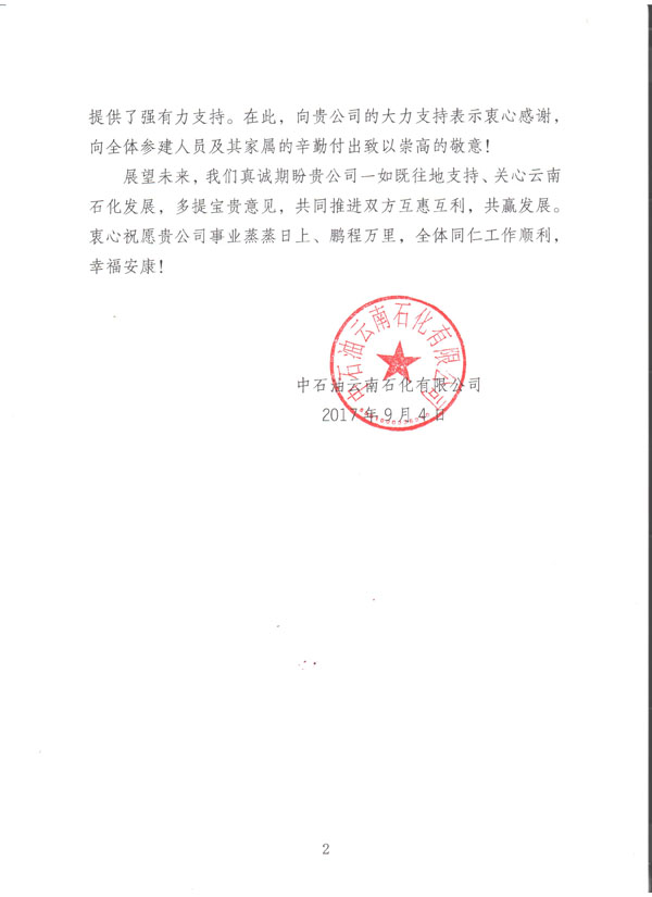 我公司于今日收到由中國石油云南石化有限公司發(fā)給我方的《感謝信》一封,信中提到:對于我方所監(jiān)理服務的煉油項目自2006年啟動籌備工作至今,我方監(jiān)理人員不計利益得失,勇于承受壓力,使得該項目近日順利投產試車成功。對于我單位的工作給予極大的肯定以及衷心的感謝。對方還提到:希望雙方在日后的共同發(fā)展中,互惠互利,共贏發(fā)展。