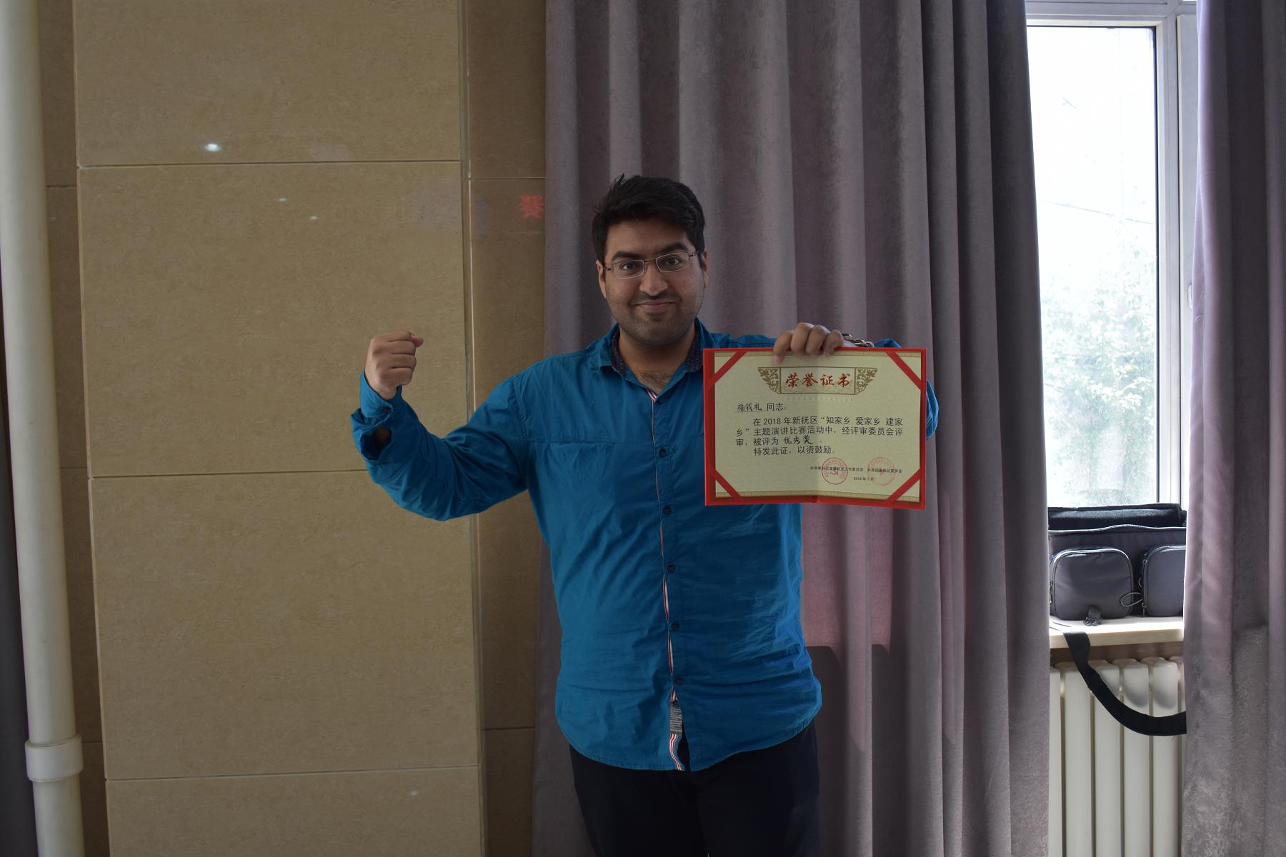 活動得到了全區(qū)機關(guān)、企事業(yè)單位廣大青年職工的積極響應(yīng),我公司選送了實習(xí)員工福載禮,一位來自巴基斯坦的留學(xué)生參加了比賽。經(jīng)過預(yù)賽的激烈角逐,福載禮與其他13名選手從初賽中脫穎而出,進入決賽。他們們從不同角度和不同層面闡述了對撫順的熱愛之情。他們用如火的激情表達投身家鄉(xiāng)建設(shè)的決心;他們用不忘初心的使命踐行新時代新青年的擔(dān)當(dāng)。他們深情地講述一個個生動真實的故事,對“知家鄉(xiāng) 愛家鄉(xiāng) 建家鄉(xiāng)”做出最好的詮釋。他們的精彩演講不時贏得評委和現(xiàn)場觀眾的陣陣掌聲。