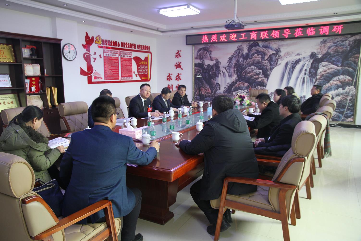 202012911時(shí)20分,由全國(guó)工商聯(lián)、市工商聯(lián)、區(qū)工商聯(lián)等各界領(lǐng)導(dǎo)人組成的第四調(diào)研小組來(lái)我企業(yè)進(jìn)行調(diào)研。此次調(diào)研小組成員由全國(guó)工商聯(lián)石油業(yè)商會(huì)會(huì)長(zhǎng)、四川巨能天然氣股份有限公司董事長(zhǎng)曾國(guó)勇、全國(guó)工商聯(lián)經(jīng)濟(jì)部商務(wù)處副處長(zhǎng)閔俊華、全國(guó)工商聯(lián)美容化妝品業(yè)商會(huì)副秘書長(zhǎng)朱媛媛、遼寧省工商聯(lián)經(jīng)濟(jì)聯(lián)絡(luò)部部長(zhǎng)于謙、市委統(tǒng)戰(zhàn)部副部長(zhǎng)工商聯(lián)黨組書記羅玉生、市工商聯(lián)副主席王小兵、市工商聯(lián)經(jīng)聯(lián)部部長(zhǎng)王林琳、中共新?lián)釁^(qū)委副書記馬占國(guó)、新?lián)釁^(qū)委統(tǒng)戰(zhàn)部常務(wù)副部長(zhǎng)、工商聯(lián)黨組書記官明、新?lián)釁^(qū)工商聯(lián)主席謝運(yùn)星組成。