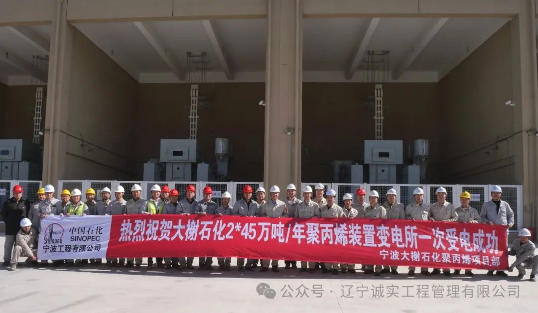 2024年11月28日11時(shí)18分,在各參建單位緊密配合下,中海油寧波大榭石化2*45萬(wàn)噸/年聚丙烯裝置變電所一次受電成功!為項(xiàng)目后續(xù)設(shè)備試運(yùn)行提供了良好的保障!項(xiàng)目部總監(jiān)理工程師王聰(后排左14)、電氣專(zhuān)監(jiān)石軍(后排左1)參加了儀式合影。